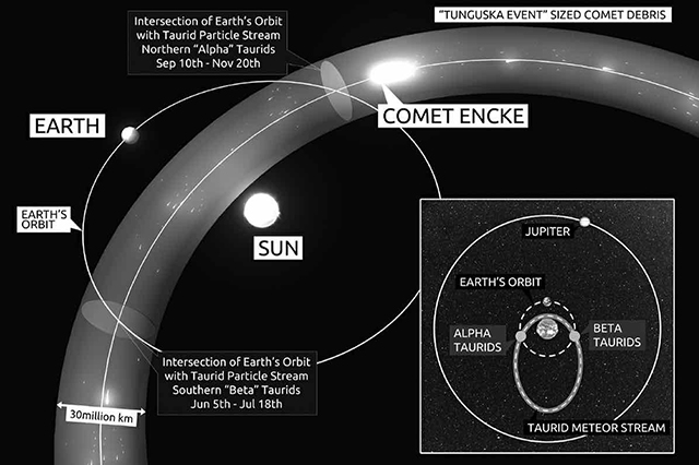 上週發佈的「金牛座流星流的綜合研究」,證實了天文學家 Bill Napier 博士和彗星研究小組 ( Comet Research Group ) 的理解。20,000 年前一顆大彗星在太陽軌道上分裂了, 多年以來產生的大大小小的碎片給地球生物和人類文明帶來了創傷,也從那時起就時斷時續地產生對宇宙的影響。