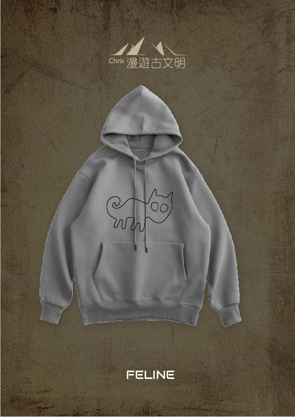 Nazca Oversized Fleece Hoodie | 納斯卡線 Collection: Feline 貓 Mid Grey S